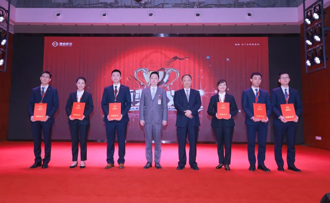 會上,通威股份管理總部、通威農發核心管理干部先后作述職匯報,全面總結各自分管公司或體系2022年度經營亮點及實施舉措,并對2023年重點工作進行整體規劃。同時,為積極弘揚通威優秀企業文化,全面營造對標先進、比學趕超的良好氛圍,充分發揮先進員工先鋒模范帶頭作用,本次會議現場對股份總部年度優秀員工進行表彰。