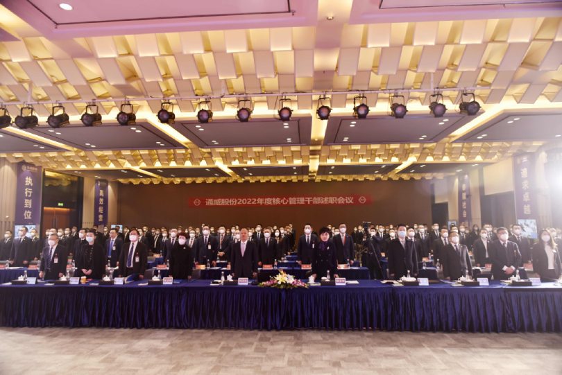 1月5日,永祥股份2022年度核心管理干部述職會議在通威國際中心成功召開。通威集團董事局劉漢元主席出席并作重要指示,通威集團管亞梅董事長,通威集團禚玉嬌總裁,通威股份董事長、CEO謝毅,副董事長嚴虎,副總裁、永祥股份總經理李斌,監事會主席鄧三、總裁助理劉舒琪,總裁助理、通威太陽能(合肥)有限公司總經理蕭圣義,光伏首席技術官邢國強博士等出席會議。各經營主體管理團隊、股份管理總部相關職能部門員工代表現場及視頻參會。