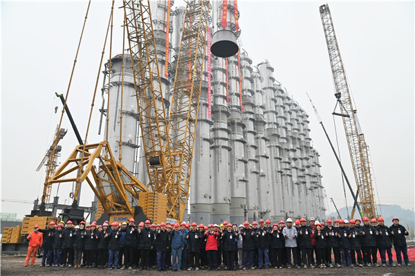 永祥能源科技一期12萬噸高純晶硅項目精餾塔吊裝圓滿竣工