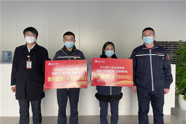 自2022年2月五型班組評比活動開展以來,通威太陽能各基地、廠部以多種形式,持續、深入對標,合計評選出優秀月度五型班308個,發放獎金60余萬元。