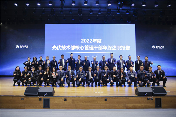 12月23日,通威股份光伏技術部成功開展2022年終述職會議,通威股份光伏首席技術官邢國強、光伏技術部光伏技術總監王秀鵬,通威太陽能副總經理宋梟、雙流基地總經理助理蔣衛朋、光伏研究院院長劉正新以及通威股份光伏技術部干部員工代表現場參會。