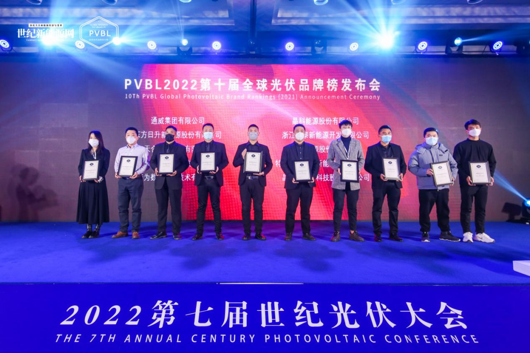 12月25日,由世紀(jì)新能源網(wǎng)、光伏品牌實(shí)驗(yàn)室Photovoltaic Brand Lab(PVBL)聯(lián)合主辦的CPC2022第七屆世紀(jì)光伏大會(huì)暨PVBL2022第十屆全球光伏品牌榜發(fā)布會(huì)在上海舉行。憑借在光伏領(lǐng)域的多年深耕和強(qiáng)勁實(shí)力,通威在本屆大會(huì)連獲四項(xiàng)榮譽(yù)大獎(jiǎng),其中榮列2022年全球硅料、硅片20強(qiáng)榜首,2022全球光伏100強(qiáng)第2名。