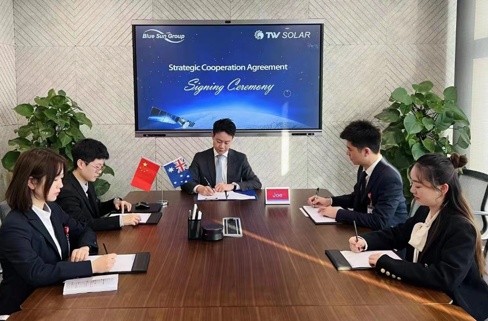 Blue Sun Group簽署現(xiàn)場(chǎng) Blue Sun Group創(chuàng)始人之一Vivian Zheng祝賀雙方順利簽署合作備忘錄,并表示,Blue Sun Group致力于成為澳大利亞光伏分銷領(lǐng)域的領(lǐng)導(dǎo)者,經(jīng)過17年的發(fā)展,已積累了豐富的經(jīng)營實(shí)力。Blue Sun Group一直以來堅(jiān)持只選擇最好的產(chǎn)品進(jìn)行分銷,非常期待與通威的合作,希望雙方攜手為澳洲光伏市場(chǎng)發(fā)展帶來更多優(yōu)秀的解決方案。 通威組件簽署現(xiàn)場(chǎng) 通威組件亞太區(qū)商務(wù)負(fù)責(zé)人Joe Chen表示,此次和Blue Sun Group的合作讓彼此緊密連接在一起,親密的合作伙伴關(guān)系使得雙方在澳洲光伏市場(chǎng)成為命運(yùn)共同體。通威作為深耕光伏行業(yè)的龍頭企業(yè),擁有強(qiáng)大的產(chǎn)業(yè)鏈垂直一體化生產(chǎn)能力、資源實(shí)力和成熟先進(jìn)的組件前沿生產(chǎn)技術(shù)。我們將向市場(chǎng)提供最優(yōu)質(zhì)、可靠的組件產(chǎn)品,以滿足全球各地差異化的實(shí)地應(yīng)用場(chǎng)景需求。通威組件產(chǎn)品全生命周期的質(zhì)量保證和商務(wù)服務(wù)團(tuán)隊(duì)提供的專業(yè)化售前、售中、售后服務(wù),能為市場(chǎng)和客戶帶來最佳的合作體驗(yàn)。 本次與Blue Sun Group合作,通威將重點(diǎn)提供受澳洲市場(chǎng)歡迎的TW-182-54版型系列組件產(chǎn)品,該系列組件產(chǎn)品兼具外形美觀與超強(qiáng)性能優(yōu)勢(shì),產(chǎn)品整體表現(xiàn)出輕盈無暇、尊貴優(yōu)雅的特點(diǎn),深度詮釋通威高效組件產(chǎn)品的極致美學(xué);過硬的前沿組件技術(shù)加持帶來更高轉(zhuǎn)換效率、更低衰減、低度電成本和優(yōu)越的抗隱裂屬性,為客戶選擇通威組件產(chǎn)品提供全方位的多重保障。 通威發(fā)力組件環(huán)節(jié),再一次向行業(yè)展示了“通威速度”和“通威效率”。2022年,通威已有組件產(chǎn)能超14GW,目前已完成對(duì)外公告的2023年新增產(chǎn)能規(guī)劃66GW,預(yù)計(jì)2023年產(chǎn)能總計(jì)達(dá)80GW。2023年,開始量產(chǎn)的通威“TNC”高效組件將帶來產(chǎn)品換代新升級(jí),其在不同區(qū)域3%-5%的發(fā)電增益將大幅提升發(fā)電能力,降低發(fā)電成本,進(jìn)一步滿足全球客戶對(duì)清潔能源日益增長的需求。