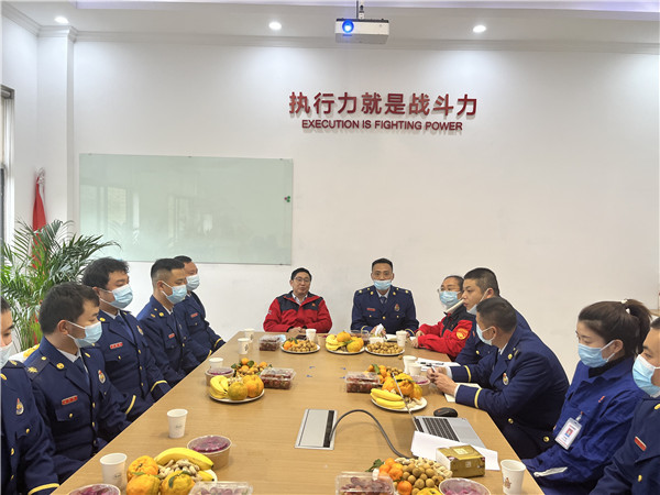 楊總對消防站本年度工作表示肯定與贊賞,并對消防隊工作提出了明確指示:消防隊務必苦練本領,熟練掌握各裝置區(qū)域風險源、危險性、處置流程,搞清楚各介質(zhì)不同的特性,做到準確處置、快速反應;要不斷加強應急演練訓練,細化各個環(huán)節(jié),從演練記錄中查找問題、取長補短,不斷優(yōu)化出警時間;消防隊作為公司輔助崗位,要全力做好崗位工作,在公司勞動紀律檢查中要嚴查細節(jié),發(fā)現(xiàn)問題追根溯源查明原因真相,對違規(guī)違紀人員要嚴格按照公司規(guī)章制度予以考核,充分發(fā)揮輔助崗位職責。楊總強調(diào),消防隊要不斷學習、不斷思考,善用一切器材裝備,通過練就過硬本領為公司安全保駕護航。