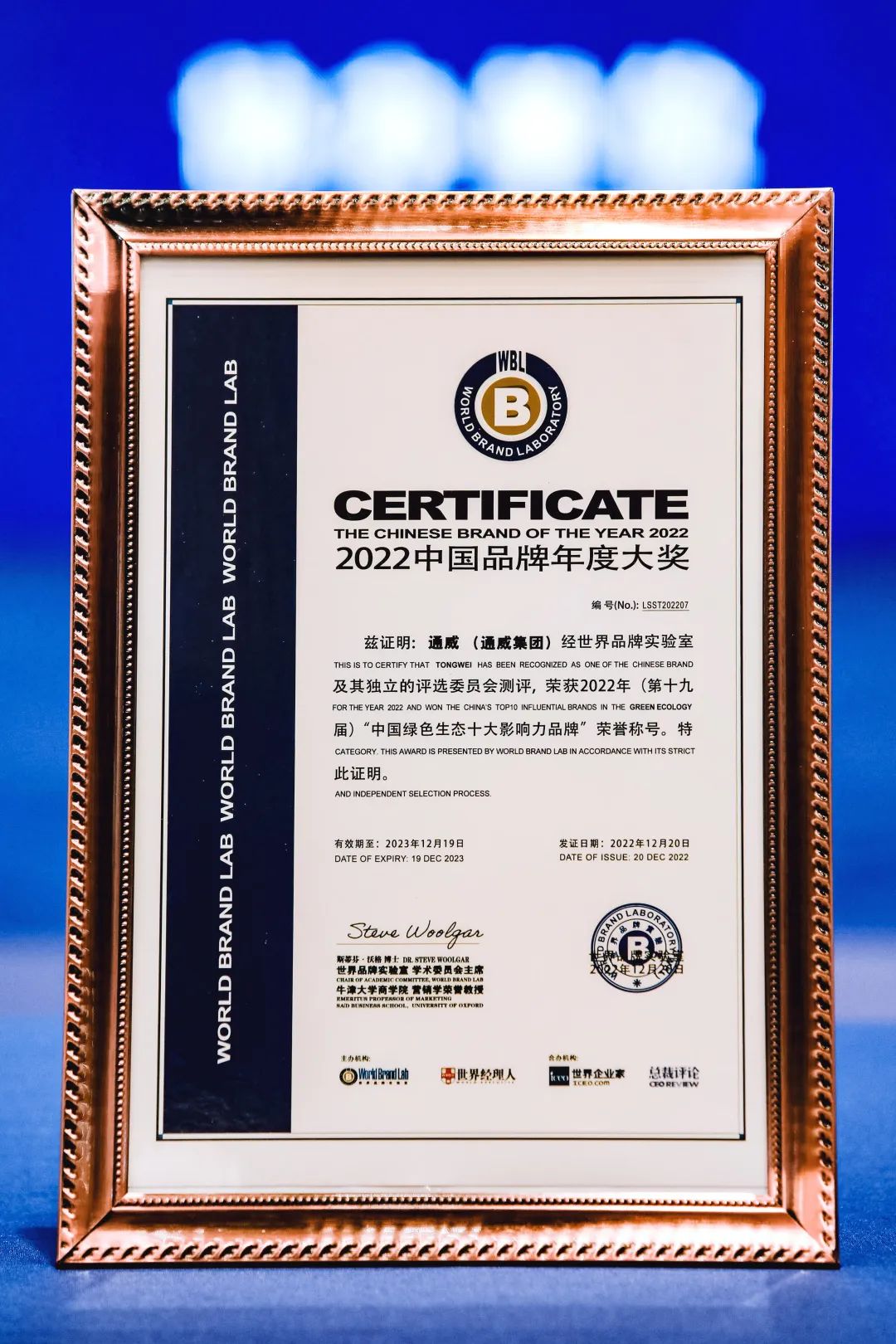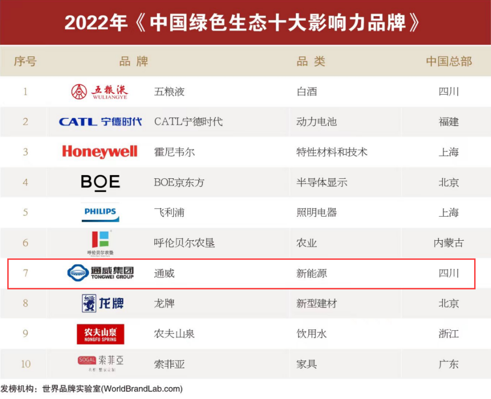 12月20日,由業(yè)界權(quán)威機(jī)構(gòu)世界品牌實(shí)驗(yàn)室(World Brand Lab)評(píng)選的2022年“中國品牌年度大獎(jiǎng)”于上海隆重揭曉。35個(gè)領(lǐng)軍品牌入選“2022年中國品牌年度大獎(jiǎng)”。憑借全球品牌影響力和領(lǐng)先的綠色發(fā)展實(shí)力,通威榮獲“中國綠色生態(tài)十大影響力品牌”。