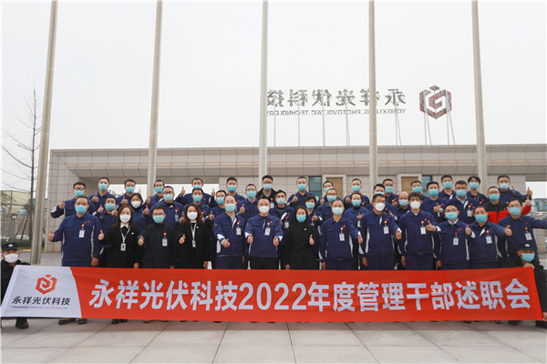 12月15日,永祥光伏科技2022年度管理干部述職大會成功舉行,永祥股份副總經理兼永祥光伏科技總經理袁中華,永祥光伏科技副總經理張軍,總經理助理趙軍、高俊偉,各部門負責人及主管級以上管理干部參加。