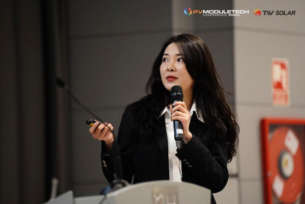 11月29-30日,由全球權威光伏媒體PV Tech主辦的組件技術交流會PV Module Tech在西班牙馬拉加舉行。會議聚焦未來幾年本地組件原材料供應問題,以及影響組件原產地和可追溯性的因素,匯聚了從組件生產到現場測試整個價值鏈的所有關鍵利益相關者。通威疊瓦業務部海外區域銷售總監Erin Lin出席會議,并作《可持續光伏制造與技術》主題演講。