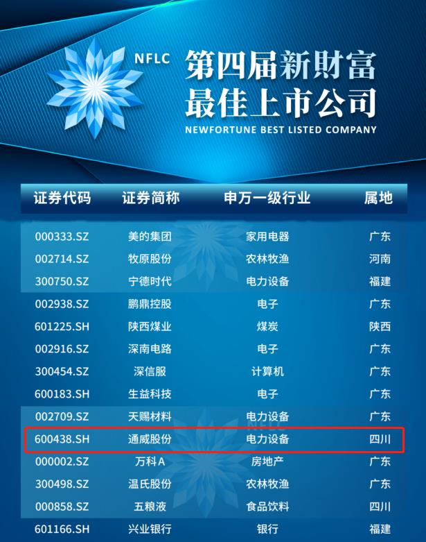 通威榮獲第四屆新財富“最佳上市公司”殊榮