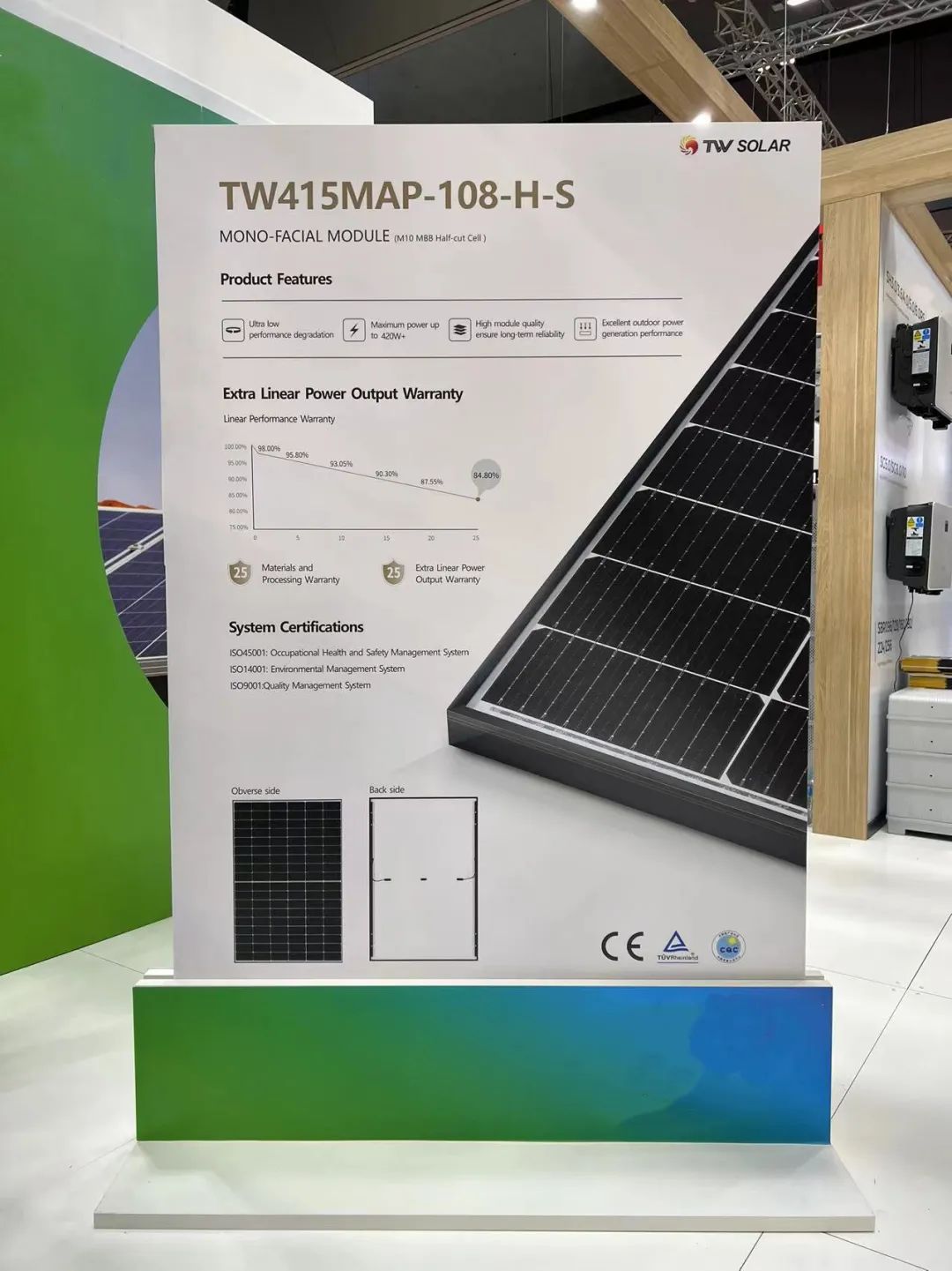 以本次展會為契機(jī),通威組件海外營銷團(tuán)隊重點(diǎn)向客戶推介了采用通威前沿創(chuàng)新技術(shù)生產(chǎn)的182mm 54黑框415 W組件,該款產(chǎn)品精致的外觀設(shè)計充分滿足了海外客群的審美要求,前沿的技術(shù)加持使得產(chǎn)品具有過硬的質(zhì)量保證,同時具備高抗衰性、高抗隱裂等穩(wěn)定性能,滿足澳大利亞熱帶、亞熱帶干旱氣候下多樣化使用場景的裝機(jī)需求。