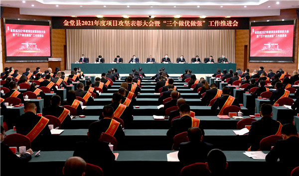 10月9日,金堂縣召開2021年度“項目攻堅”表彰大會暨“三個做優做強”工作推進會,隆重表彰在2021年度推進“項目攻堅”助力產業功能區建設中表現突出的先進集體和先進個人,金堂縣委書記、淮州新城黨工委書記鐘靜遠出席會議并講話。會議宣讀了《中共金堂縣委、金堂縣人民政府關于表彰金堂縣2021年度推進“項目攻堅”助力產業功能區建設先進集體和先進個人的決定》,通威太陽能金堂基地榮獲“先進個人”和“先進集體”兩項榮譽,通威太陽能金堂基地總經理助理龐三鳳出席會議并作為先進集體代表進行發言。