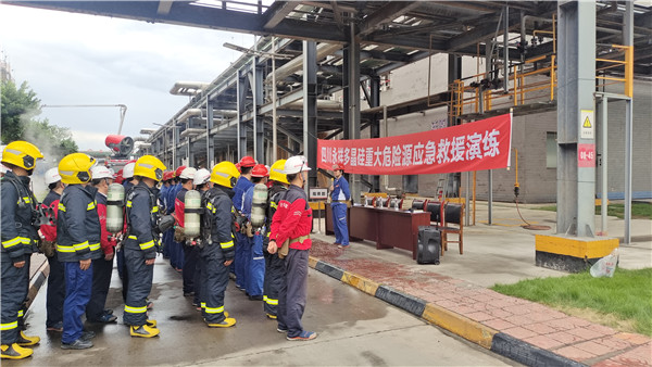 為了深入貫徹“安全第一、預防為主”的方針,提高生產系統(tǒng)突發(fā)事件應急處置能力,9月20日,永祥多晶硅組織在803-7裝置內開展應急救援演練。公司總經理劉逸楓、安全環(huán)保總監(jiān)牟俊豐、總經理助理彭勇、副總工程師羅軒、總經理助理兼生產部經理王世棋及各部門負責人出席。