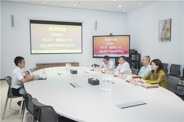 8月27日,金辰股份董事長李義升一行蒞臨通威太陽能眉山基地座談交流,通威太陽能眉山基地廠長姚騫熱情接待。