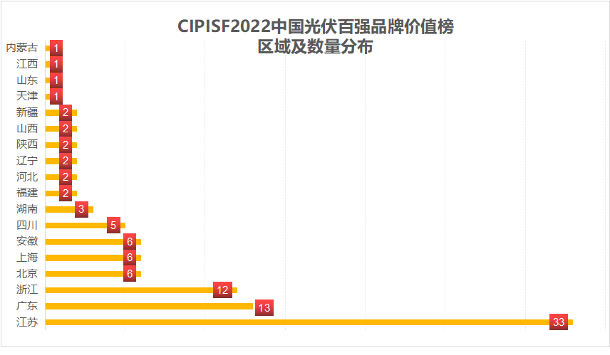“CIPISF2022中國光伏百強品牌價值榜”區域及數量分布