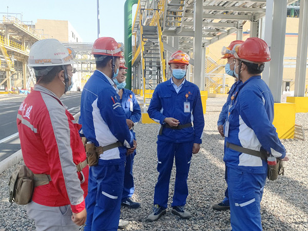 袁中華總經理就現場生產裝置的運行狀況、聯鎖系統、安全附件和水處理系統進行深入的風險辨識討論,從系統的角度分析目前各裝置保護層的有效性。在水處理系統重點檢查水質在線監測的有效性、應提前采取的具體防寒措施、壓濾機系統運行保障等,每個管控要素具體到人,落實跟蹤。與此同時,重點關注承包商施工安全交底和現場執行檢查情況,就現場安全行為管控、生產負荷管控等方面進行工作指導,指示現場重點施工工程部與屬地共同制定施工專項方案,交底到位,分管人員履職檢查。