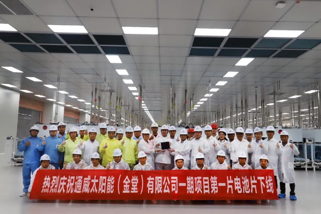 ▲2021年5月28日,通威太陽能金堂基地一期項目第一片電池片順利下線