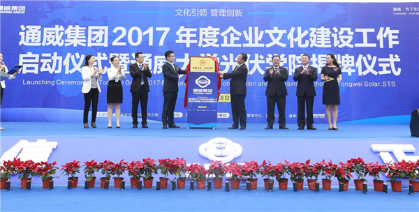▲2017年5月18日,劉漢元主席為通威光伏學(xué)習(xí)中心(原通威大學(xué)光伏學(xué)院)揭牌