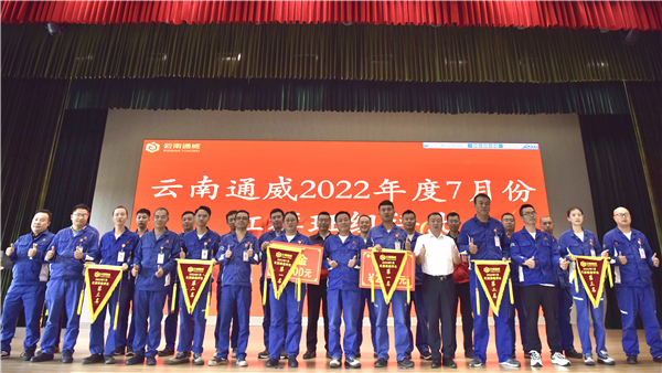 8月13日,云南通威召開月度紅旗班組評比會。云南通威副總經理汪云清、總經理助理閆一夫、指揮長助理劉旭、指揮長助理李平清、總經理助理楊成、副總工程師彭中出席并擔任評委,相關部門負責人、班組成員及后勤職能部門員工參加。