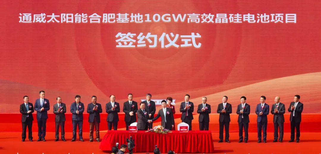 ▲通威太陽能合肥基地10GW高效晶硅電池項目簽約儀式現場