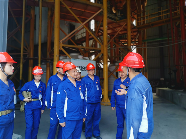 8月11日,通威股份副總裁、永祥股份總經理李斌蒞臨永祥新材料現場檢查指導工作,公司常務副總經理廖萬能、副總工程師吳銘生及相關部門負責人陪同。