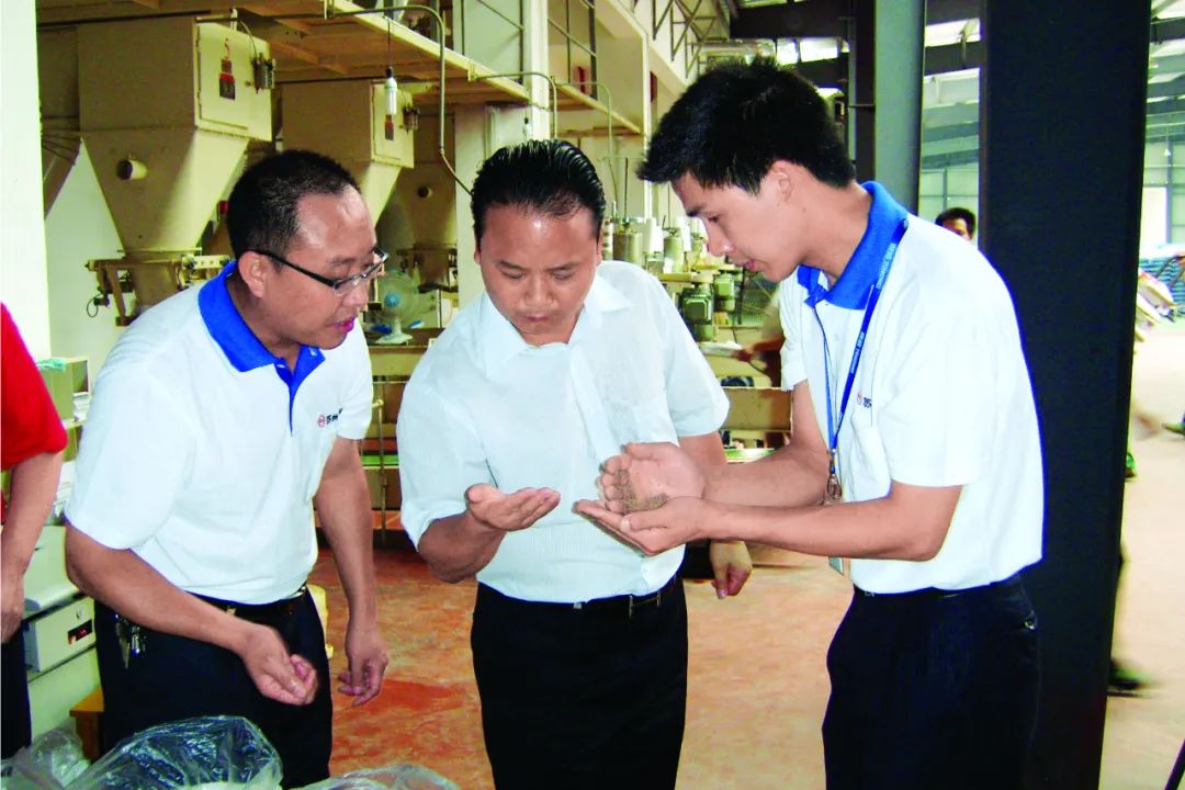 ▲早期,劉漢元主席在蘇州通威檢查飼料質(zhì)量