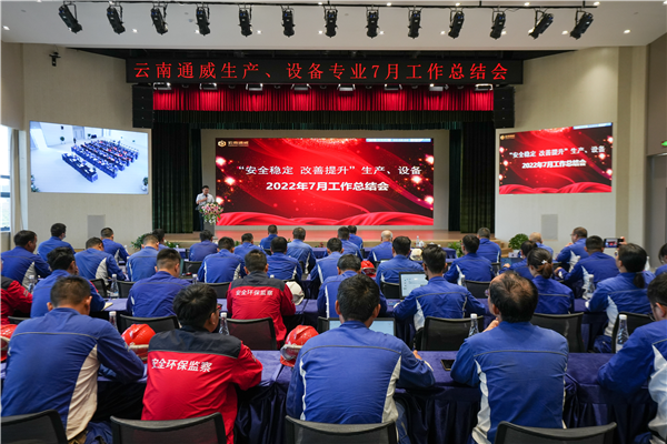 8月6日,云南通威開展生產、設備系統7月工作總結會。永祥股份副總經理兼云南通威總經理杜炳勝,云南通威副總經理汪云清、指揮長助理劉旭、指揮長助理李平清、各部門負責人及生產系統四大員以上人員參會。