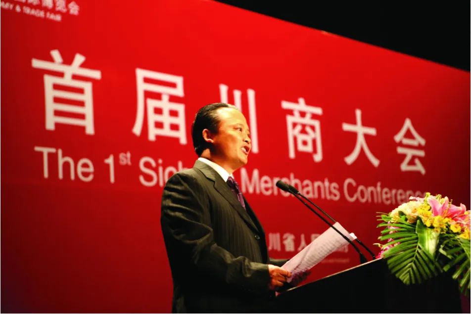 ▲2008年10月28日,劉漢元主席出席首屆川商大會并宣讀倡議書