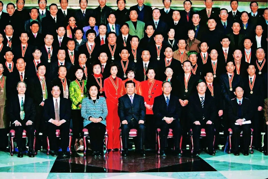 ▲2004年12月24日,劉漢元主席(第三排右六)被授予“優秀中國特色社會主義事業建設者”稱號