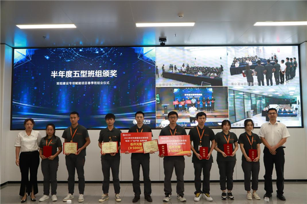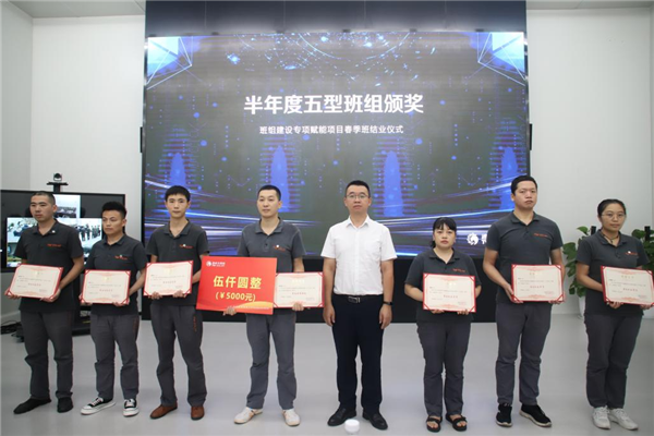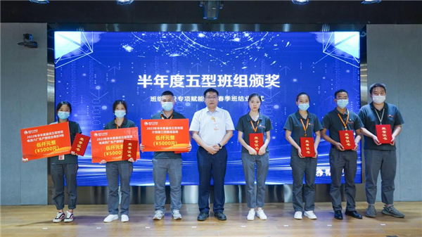 隨后合肥、雙流、眉山、金堂基地及通合項(xiàng)目的班組學(xué)員代表依次對(duì)半年來班組建設(shè)成果進(jìn)行匯報(bào)展示,春季班的全體成員及導(dǎo)師現(xiàn)場聆聽學(xué)習(xí)各基地班組建設(shè)優(yōu)秀經(jīng)驗(yàn),對(duì)標(biāo)審視各自班組的不足,并為未來建設(shè)優(yōu)秀班組打開新思路。在春季班項(xiàng)目實(shí)施過程中,涌現(xiàn)了許多學(xué)習(xí)成果突出、班組建設(shè)成果明顯的學(xué)員和團(tuán)隊(duì),活動(dòng)現(xiàn)場對(duì)表現(xiàn)優(yōu)異的團(tuán)隊(duì)及個(gè)人進(jìn)行頒獎(jiǎng),現(xiàn)場掌聲雷動(dòng)。