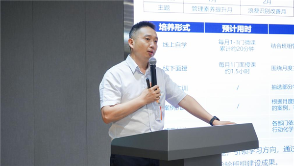 活動(dòng)尹始,通威太陽能總經(jīng)理助理陳君對(duì)項(xiàng)目實(shí)施成果進(jìn)行回顧總結(jié),半年來光伏學(xué)習(xí)中心圍繞五型班組打造建立了完善的評(píng)優(yōu)表彰機(jī)制,采用線上自學(xué)、線下探討、現(xiàn)場項(xiàng)目實(shí)踐、案例分析沉淀及展示匯報(bào)等多種方式賦能提升一線管理者綜合能力,助力一線班組管理者及高潛儲(chǔ)備人才學(xué)習(xí)班組建設(shè)技能,厘清班組管理思路。陳總表示,上半年圍繞五型班組建設(shè),各基地、各部門都營造了良好的班組PK氛圍,班組建設(shè)成果突出,未來希望通過持續(xù)的明方向、作比較、提技能催生更多優(yōu)秀團(tuán)隊(duì)。