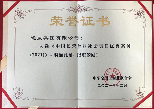 ▲通威入選《中國民營企業(yè)社會責(zé)任優(yōu)秀案例(2021)》榮譽(yù)證書
