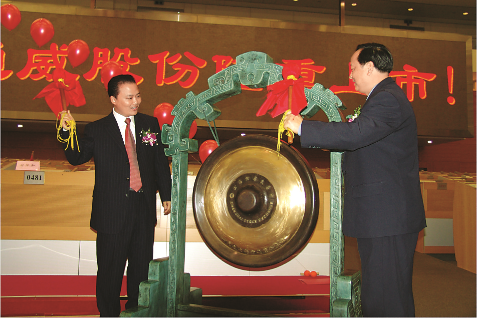2004年3月2日,是一個讓全體通威人都深刻銘記的日子。在上海證券交易所,通威股份舉行了隆重上市儀式。9點30分,劉漢元主席走到上市銅鑼前,舉起包裹著大紅綢布的鑼錘,為通威股份鳴鑼開市。隨著一聲渾厚的鑼聲,通威股份6000萬股在上海證券交易所正式公開發行,發行價格7.5元/股,發行總市值4.5億元。