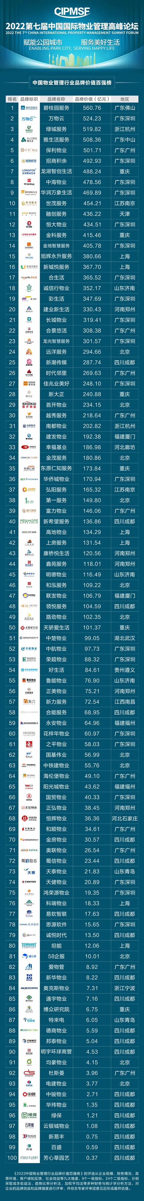 中國(guó)物業(yè)管理行業(yè)品牌價(jià)值百?gòu)?qiáng)榜