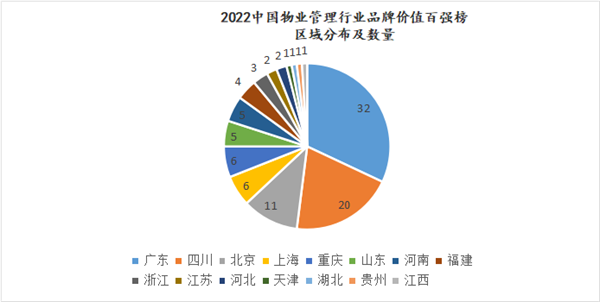 “2022中國(guó)物業(yè)管理行業(yè)品牌價(jià)值百?gòu)?qiáng)榜”區(qū)域分布及數(shù)量