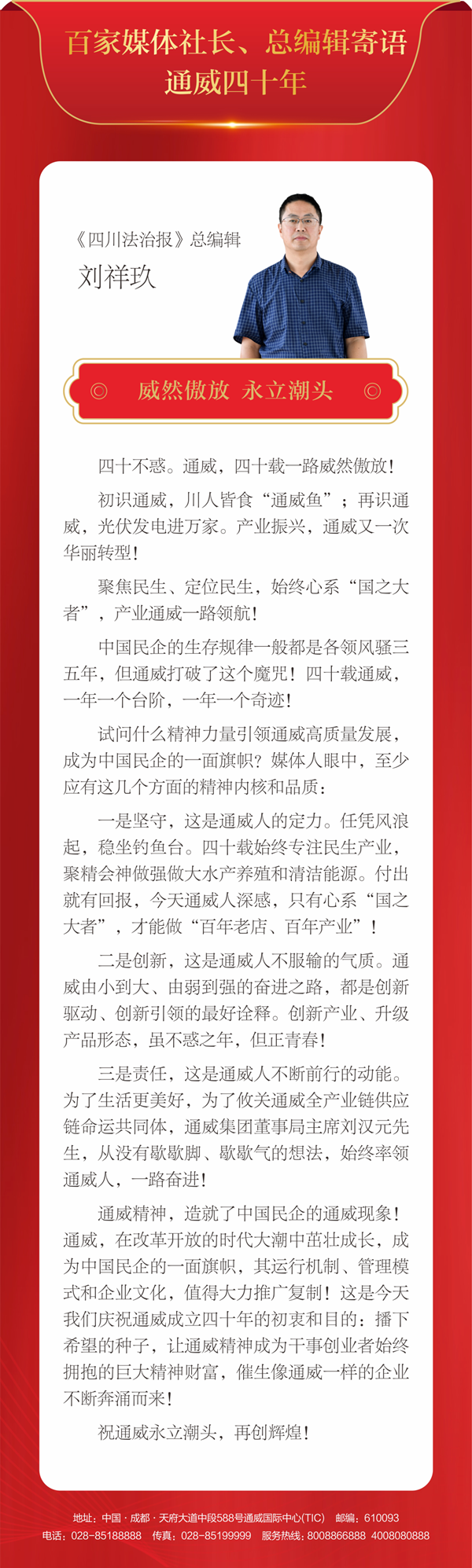百家媒體社長(zhǎng)、總編輯寄語通威四十年丨威然傲放,永立潮頭