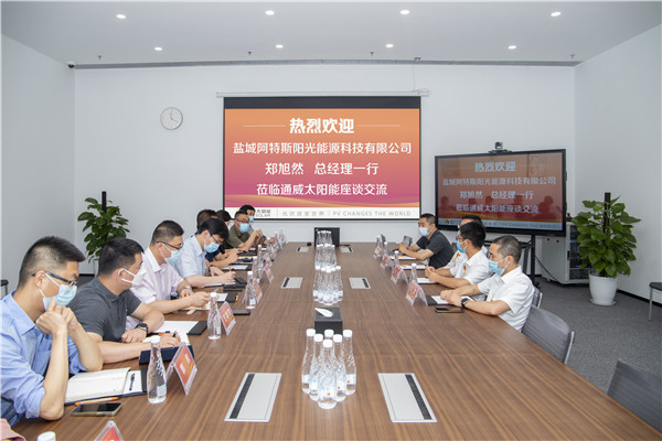 6月9日,鹽城阿特斯陽(yáng)光能源科技有限公司總經(jīng)理鄭旭然一行蒞臨通威太陽(yáng)能眉山基地參觀交流,通威太陽(yáng)能眉山基地副廠長(zhǎng)姚騫熱情接待。