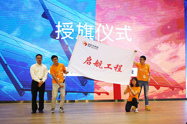 隨后,通威大學(xué)光伏學(xué)院老師從項(xiàng)目背景、集訓(xùn)規(guī)劃、發(fā)展通道三個(gè)方面對“啟航工程”項(xiàng)目做了全面介紹。為了充分體現(xiàn)儀式感,促進(jìn)學(xué)員們的奮斗熱情,光伏學(xué)院精心設(shè)計(jì)了授旗儀式、宣誓儀式、班級文化展示等一系列活動(dòng)環(huán)節(jié)。最后,兩地2016年“啟航工程”優(yōu)秀學(xué)員代表,向?qū)W員們分享了自己從一名應(yīng)屆畢業(yè)生成長為工程師的點(diǎn)點(diǎn)滴滴。開營儀式在學(xué)員們熱情的掌聲中完美落幕。