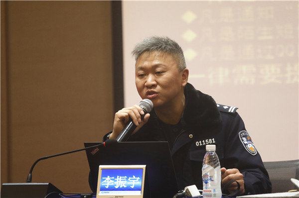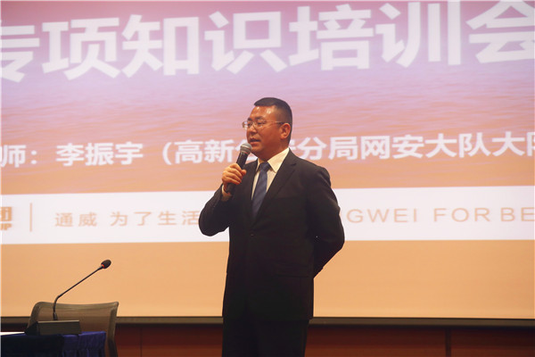 高新公安分局網(wǎng)安大隊(duì)長(zhǎng)李振宇為現(xiàn)場(chǎng)員工作普法宣講
