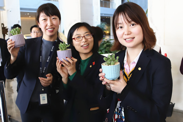 活動當天,通威國際中心提前為入駐企業的女神們準備了500盆精美可愛的多肉植物,并于中午12點在大廈大廳內統一由客服工作人員親手送到廣大女神手中。“通威國際物業服務中心祝各位‘女神’們節日快樂!”值得一提的是,與往年不同,今年通威國際中心通過前期針對廣大女性朋友喜好的了解,選擇了大多數女性朋友都喜愛的多肉植物。廣大“女神”們收到精心準備的禮物和祝福后驚喜不已,紛紛感謝物業為其準備的精美禮物和優質服務,整棟大樓沉浸在歡樂溫馨的節日氣氛之中。