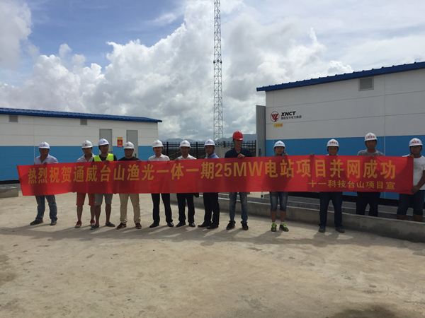員工齊賀通威“漁光一體”(臺山)現代漁業產業園一期25MW光伏發電項目并網成功