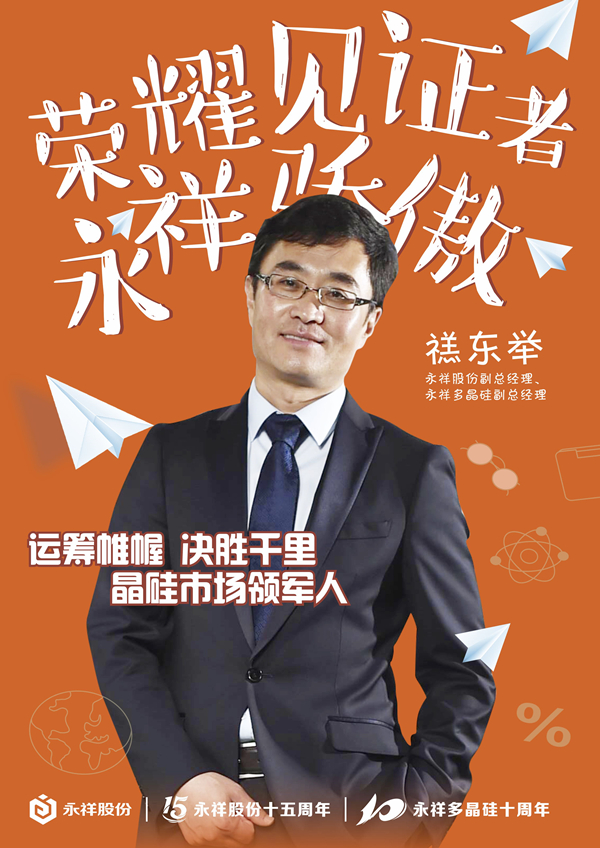 作為一名老永祥人,永祥股份副總經理、永祥多晶硅副總經理禚東舉對永祥股份有著極深的感情。扎根于市場10余年,禚總經歷了光伏市場的風云變化、跌宕起伏,始終堅守在市場一線沖鋒陷陣、開疆拓土,伴隨著永祥發展壯大的每一步。