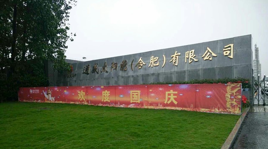 通威太陽(yáng)能(合肥)公司廠區(qū)門口LED大屏顯示“歡度國(guó)慶”