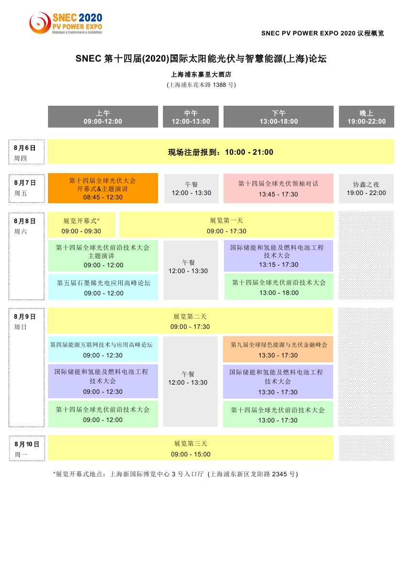 索比光伏網丨SNEC第十四屆(2020)國際太陽能光伏展議程概覽