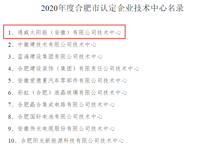 通威太陽能合肥基地榮獲“合肥市企業技術中心”認定