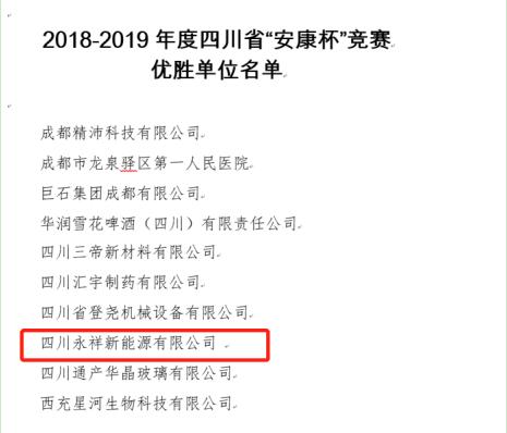 永祥新能源榮獲四川省“安康杯” 競賽優勝單位稱號