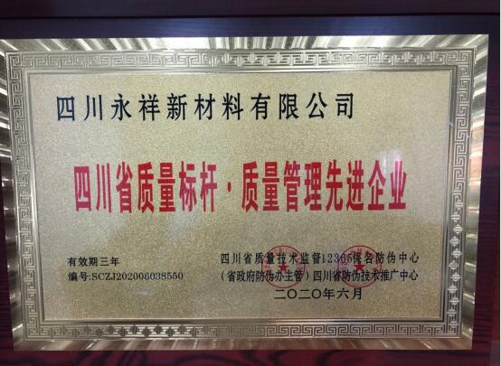 永祥新材料榮獲四川省質(zhì)量標(biāo)桿·質(zhì)量管理先進(jìn)企業(yè)稱(chēng)號(hào)