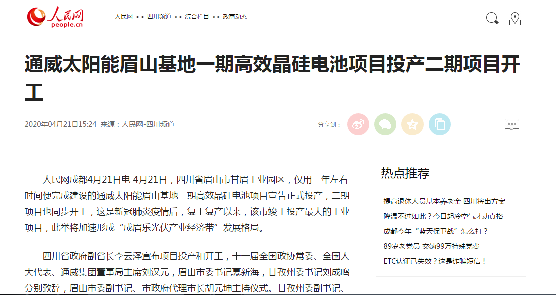 這就是“通威速度”!80余家主流媒體聚焦通威太陽(yáng)能眉山項(xiàng)目投產(chǎn)