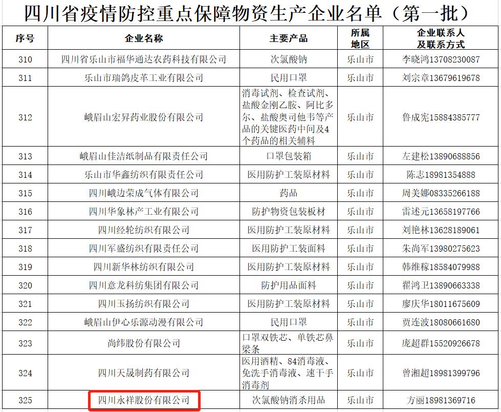 永祥股份榮列“四川省防疫物資重點(diǎn)保障企業(yè)”名錄