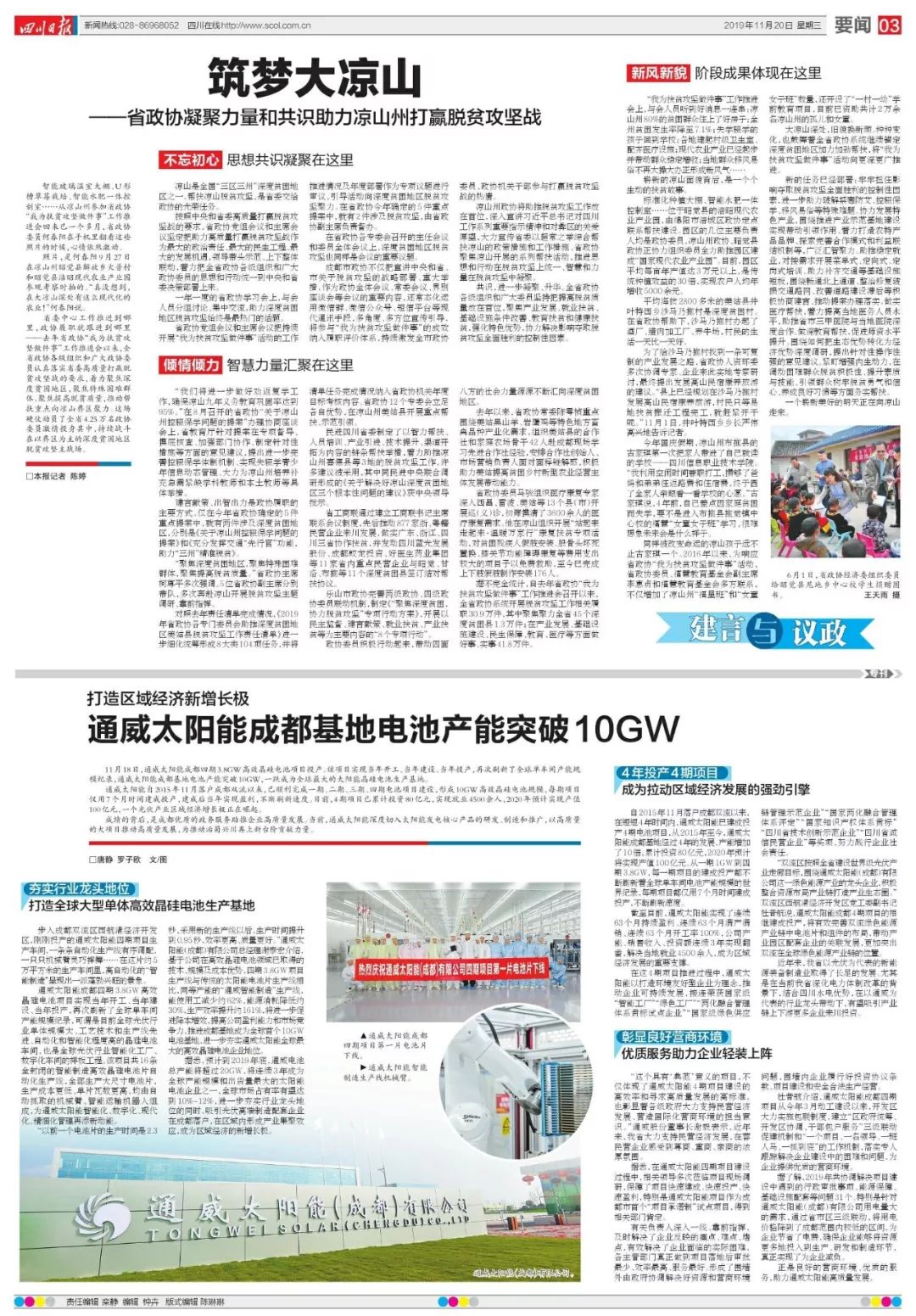 四川日報:打造區(qū)域經(jīng)濟(jì)新增長極,通威太陽能成都電池產(chǎn)能突破10GW
