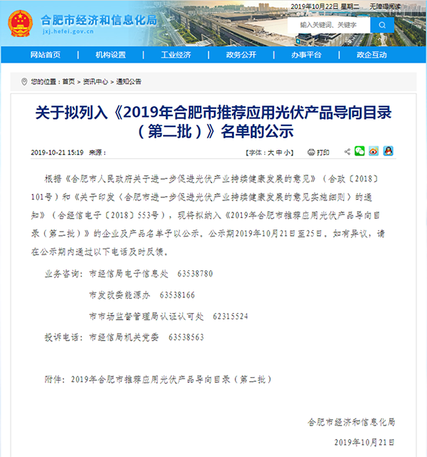 通威太陽能榮列《2019年合肥市推薦應(yīng)用光伏產(chǎn)品導(dǎo)向目錄(第二批)》公示名單