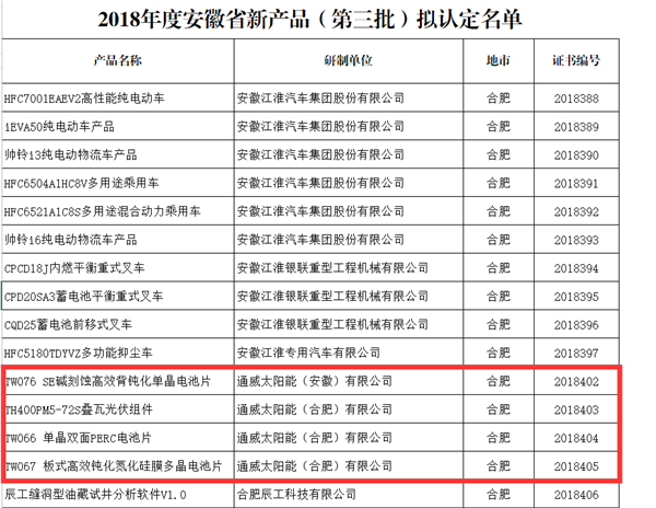 通威太陽能合肥公司榮列兩項2018安徽省民營企業百強榜單